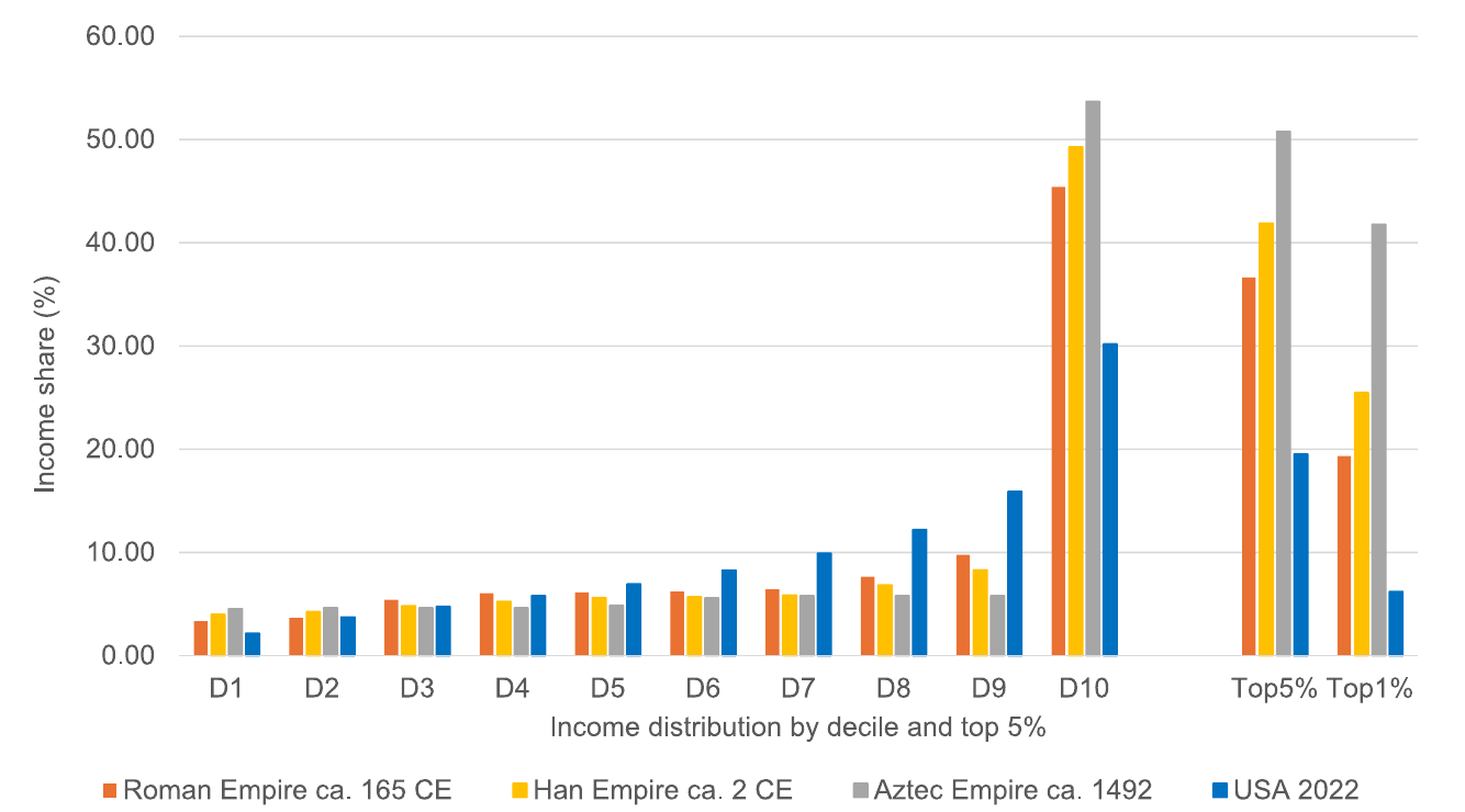 Figure 1: Comparison of income shares in the Roman, Han and Aztec Empire and the United States.